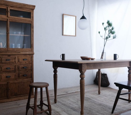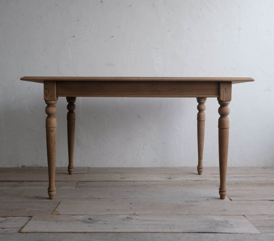 杉材を使用した、ろくろ脚のフォルムがクラシカルなデザインのテーブルです。奥行68cmとスリムなサイズ感は、コンパクトなダイニングテーブルや少し大きめのコンソールテーブルとしてお使いいただけます。フレンチシャビーやアンティーク、インダストリアルなど様々なテイストに合わせていただくことが可能です。